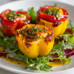 - Evenly distribute the salad mixture into each prepared bell pepper cup.
